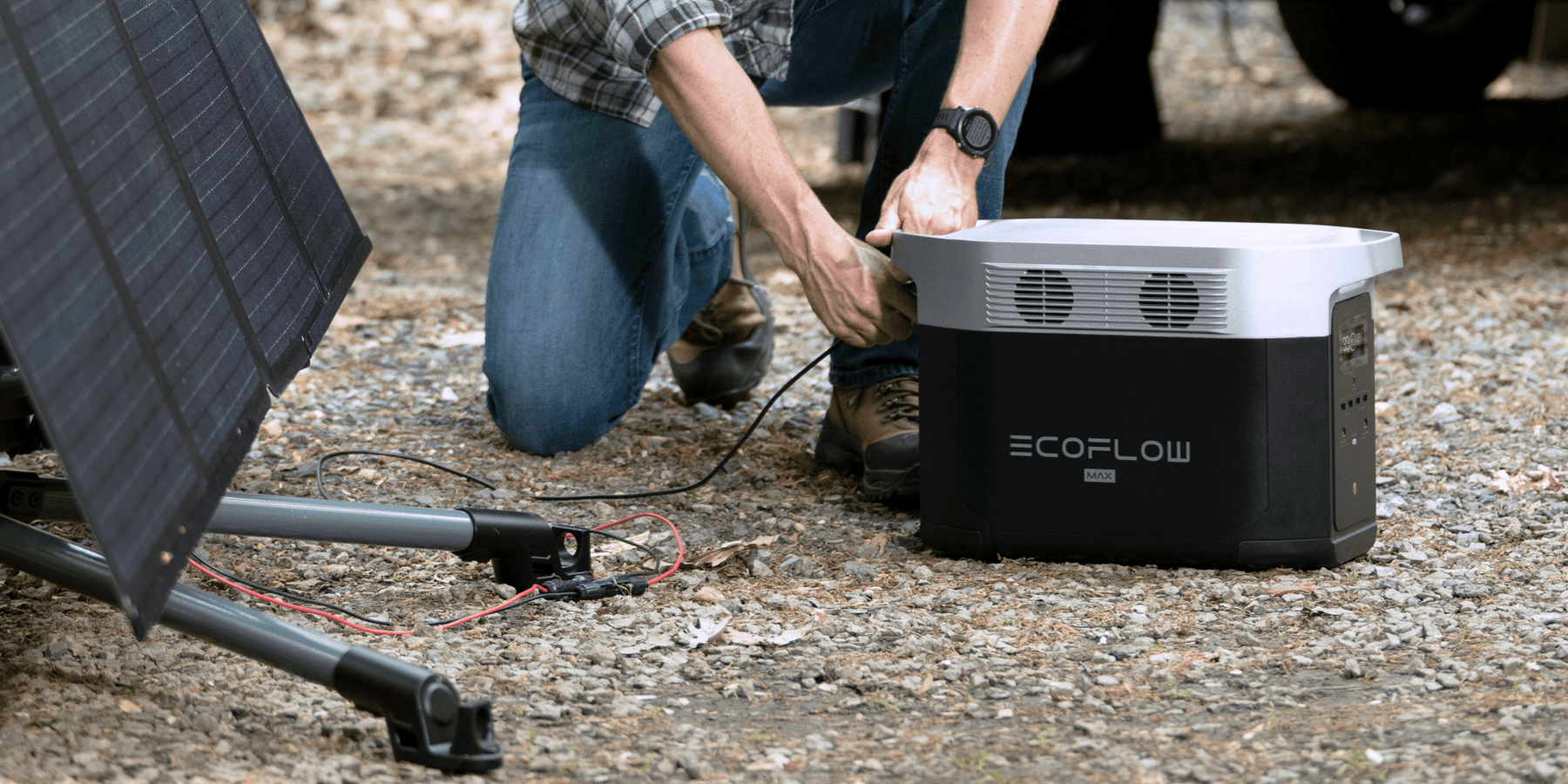 DELTA Max connects with up to 2x 400W EcoFlow solar panels to deliver 800W Max solar charging speeds. With a voltage range from 11-100V and the solar connector, you can also connect other solar panels to your DELTA Max. Even during cold or cloudy days, our smart maximum power point tracking (MPPT) algorithm automatically detects voltage and current in real time to give you optimum solar generation throughout the day.