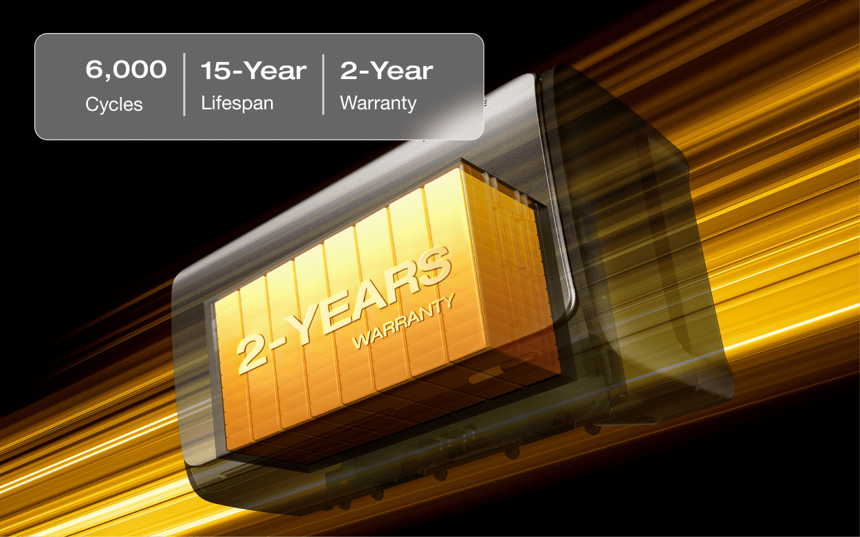 Equipped with advanced LFP battery cells, STREAM delivers up to 6,000 deep cycles with 70% capacity retention — lasting up to 3× longer than traditional batteries. That means up to 15 years of reliable use, backed by a 2-year warranty.