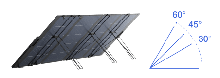 The folding integrated bracket offers a convenient and compact design. Adjustable to 30°, 45°, and 60°, making it ideal for most high-latitude areas. Adjustable stand with 30°, 45°, and 60° positions