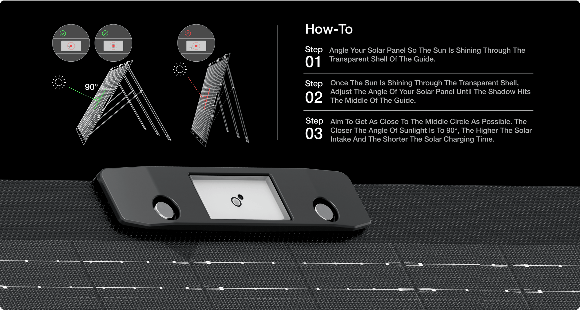 With a newly integrated solar angle guide and stand, adjust the angle of the panel by 30 degrees in seconds to get the most sunshine at all times.