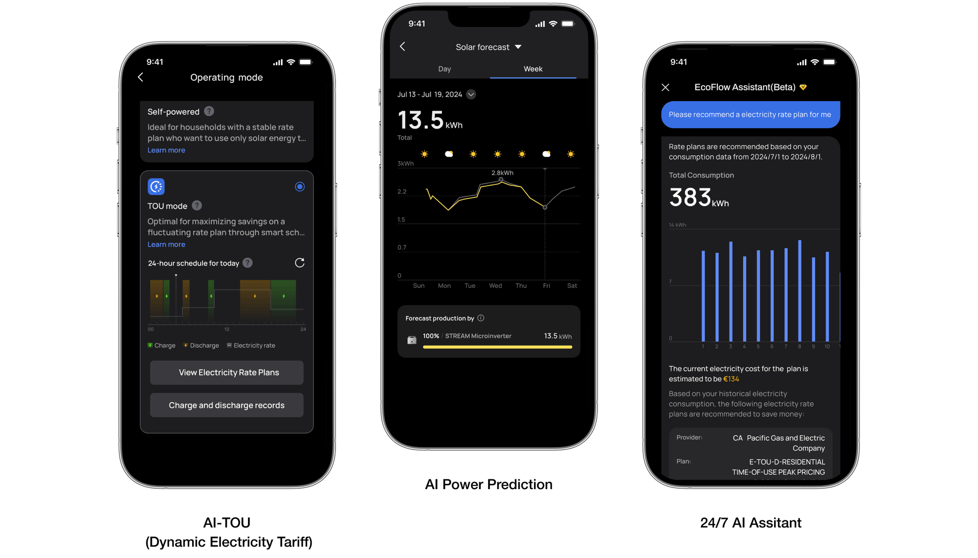 *The AI-TOU and AI Power Prediction features require connectivity to the EcoFlow STREAM Series Solar Plant. Certain AI functionalities are available through premium subscriptions. For detailed specifications and pricing, please visit the EcoFlow APP.