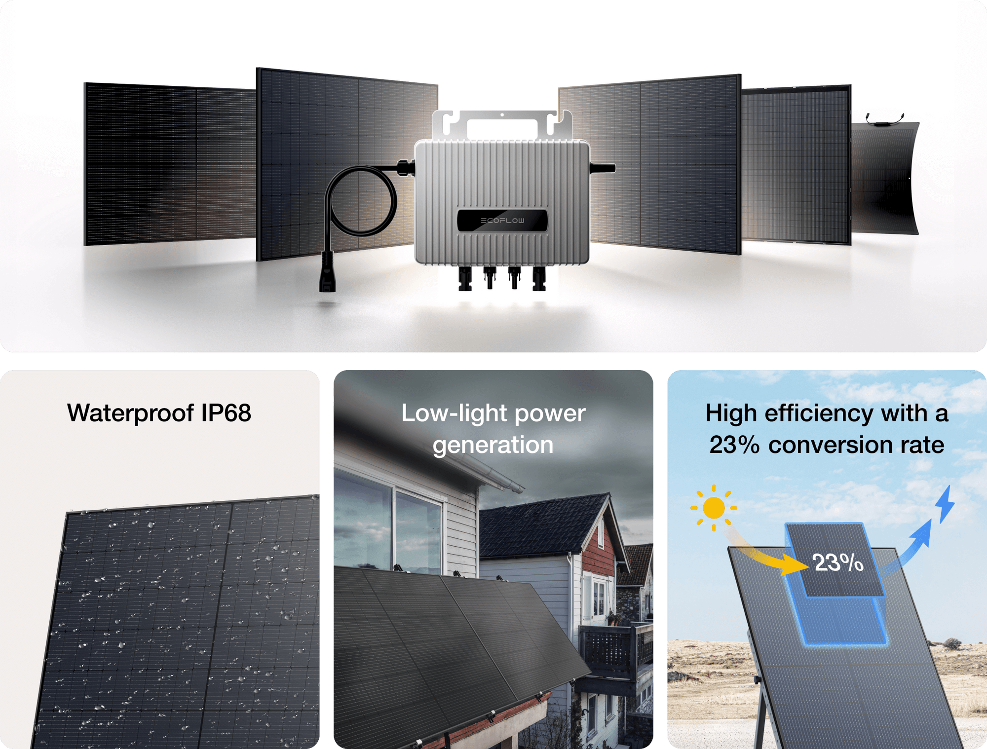 The EcoFlow STREAM Balcony Solar System excels even in low light. The microinverter activates with just 3W of solar input, ensuring a steady power supply to your home, even during early morning or dusk hours.*