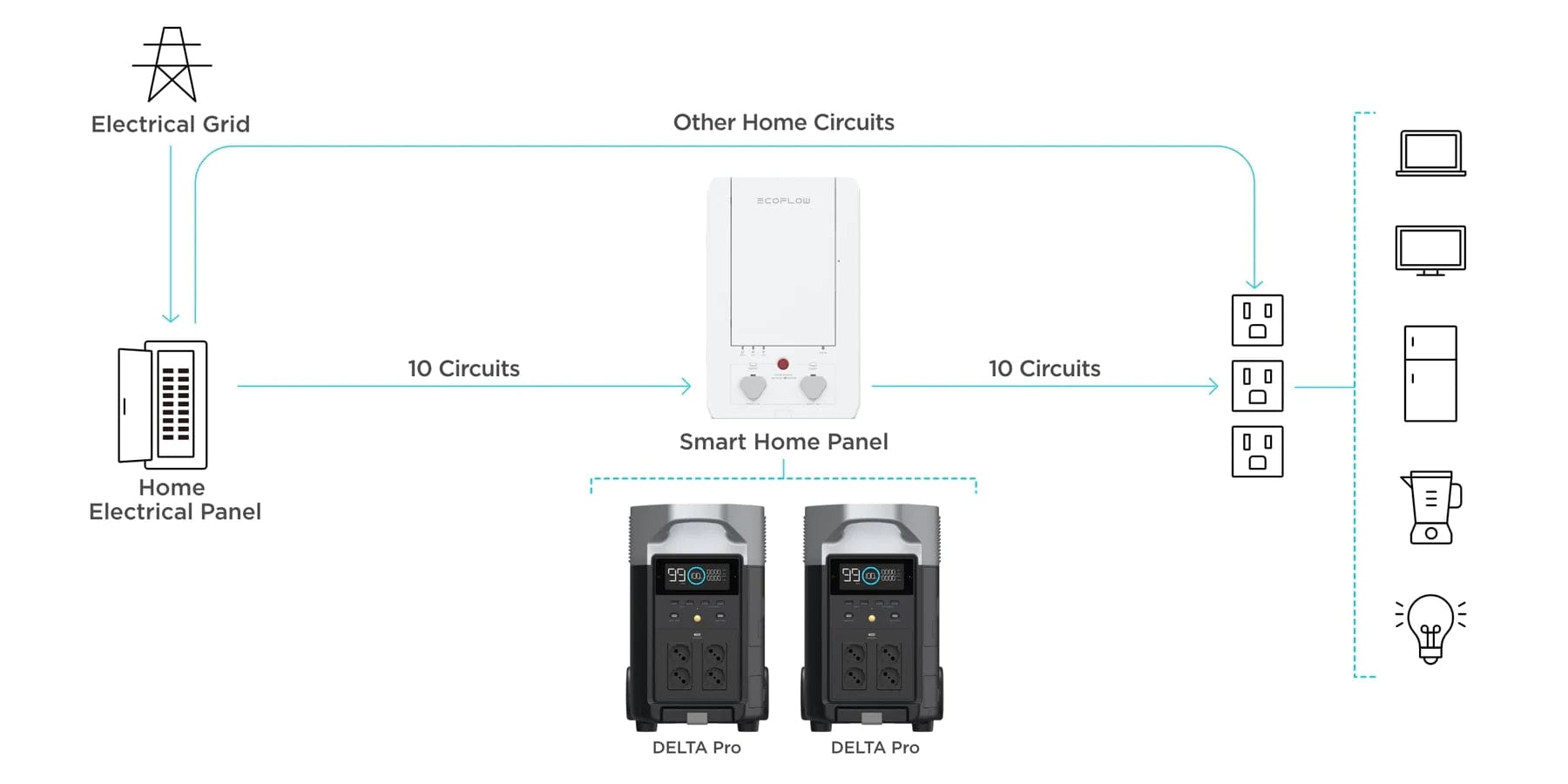 When a blackout hits, the Smart Home Panel immediately switches to your 10 integrated circuits and draws power from your DELTA Pro(s). You'll barely notice a loss of power as your chosen circuits stay powered with a mere 20ms switchover time.