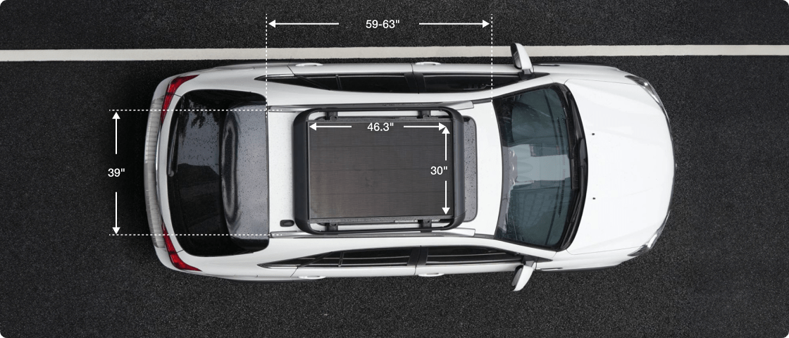 It is perfectly sized for installation on a 59-63" × 39" SUV roof, optimizing solar energy collection.