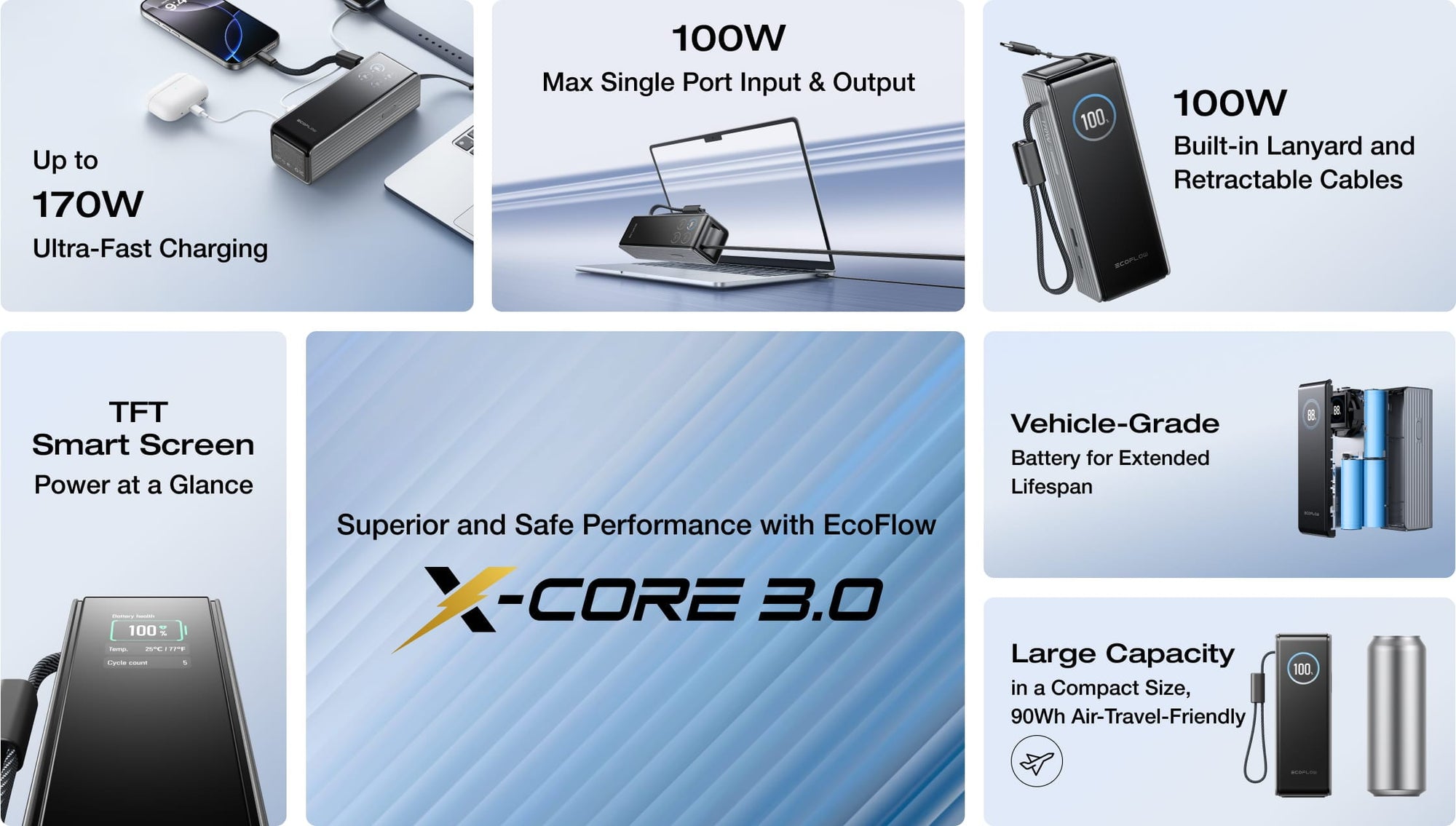 Specs - EcoFlow RAPID Power Bank (25,000mAh, 170W, 100W Built-In and Retractable Cables)