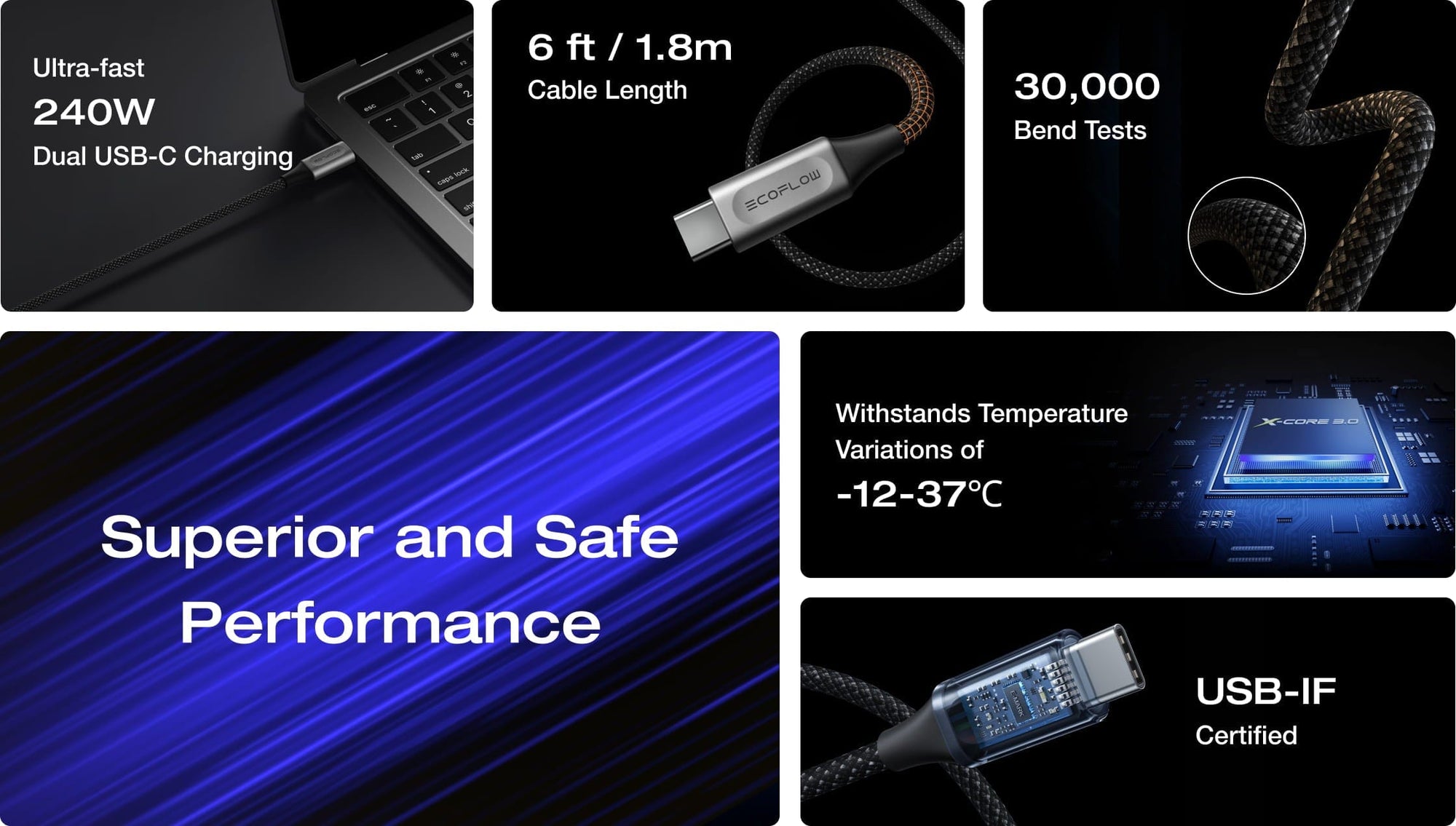 Specs - EcoFlow RAPID Pro USB-C to USB-C Cable (240W, Nylon)