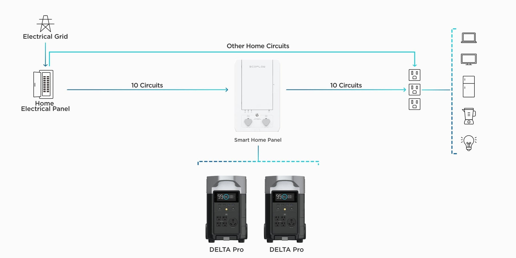 The DELTA Pro Ecosystem all links together with the Smart Home Panel at its heart.