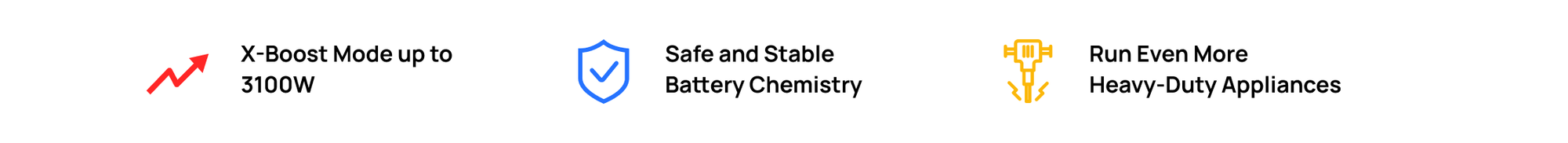 Huge AC output: With X-Boost mode, get up to 3100W output power to run 99% of home appliances. Power 13 devices at once, including 4 AC outlets.