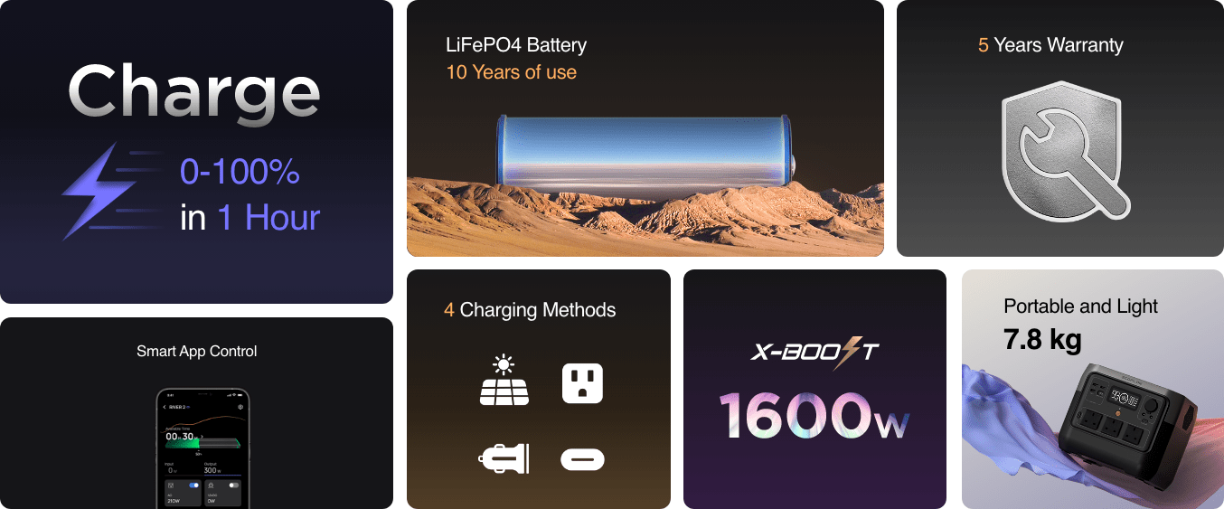Ever worried about running out of power or annoyed by a sluggish recharge? Our MPPT algorithm monitors the voltage and current in real-time to give you optimum solar generation under varying conditions with over 98% efficiency, fully charge RIVER 2 Pro while you pack your bags, so you'll always be ready for a last-minute trip.