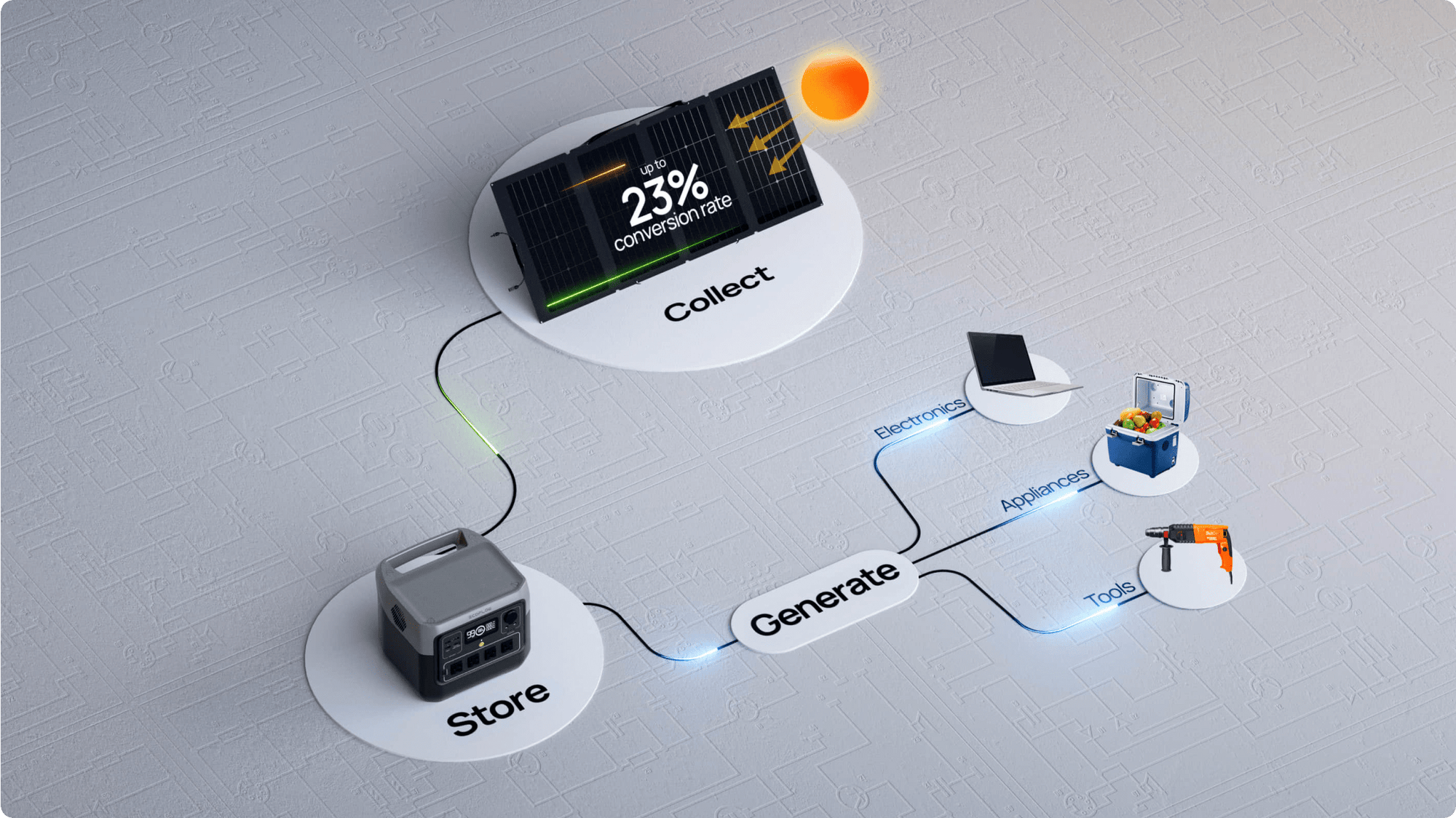RIVER 2 Pro Solar Generator produces up to 1.8kWh daily, which means sufficient power to run your essential appliances smoothly for almost half a day. Sudden power outages? You'll always be ready.