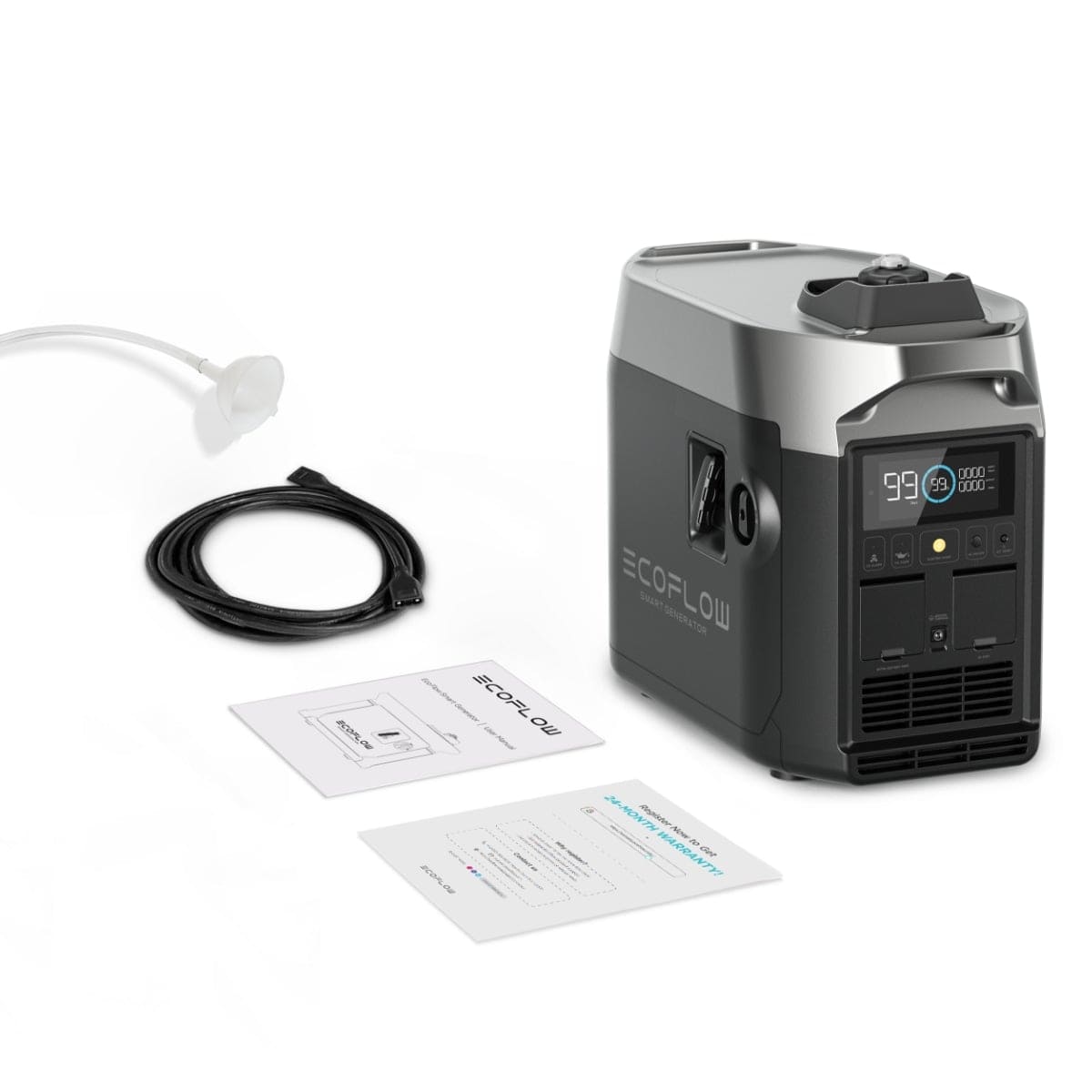 The EcoFlow Smart Generator simplifies emergency power, featuring an LCD screen, CO alert, fuel alert, and an auto shutdown – giving you everything you need to stay safe during a power outage or emergency.