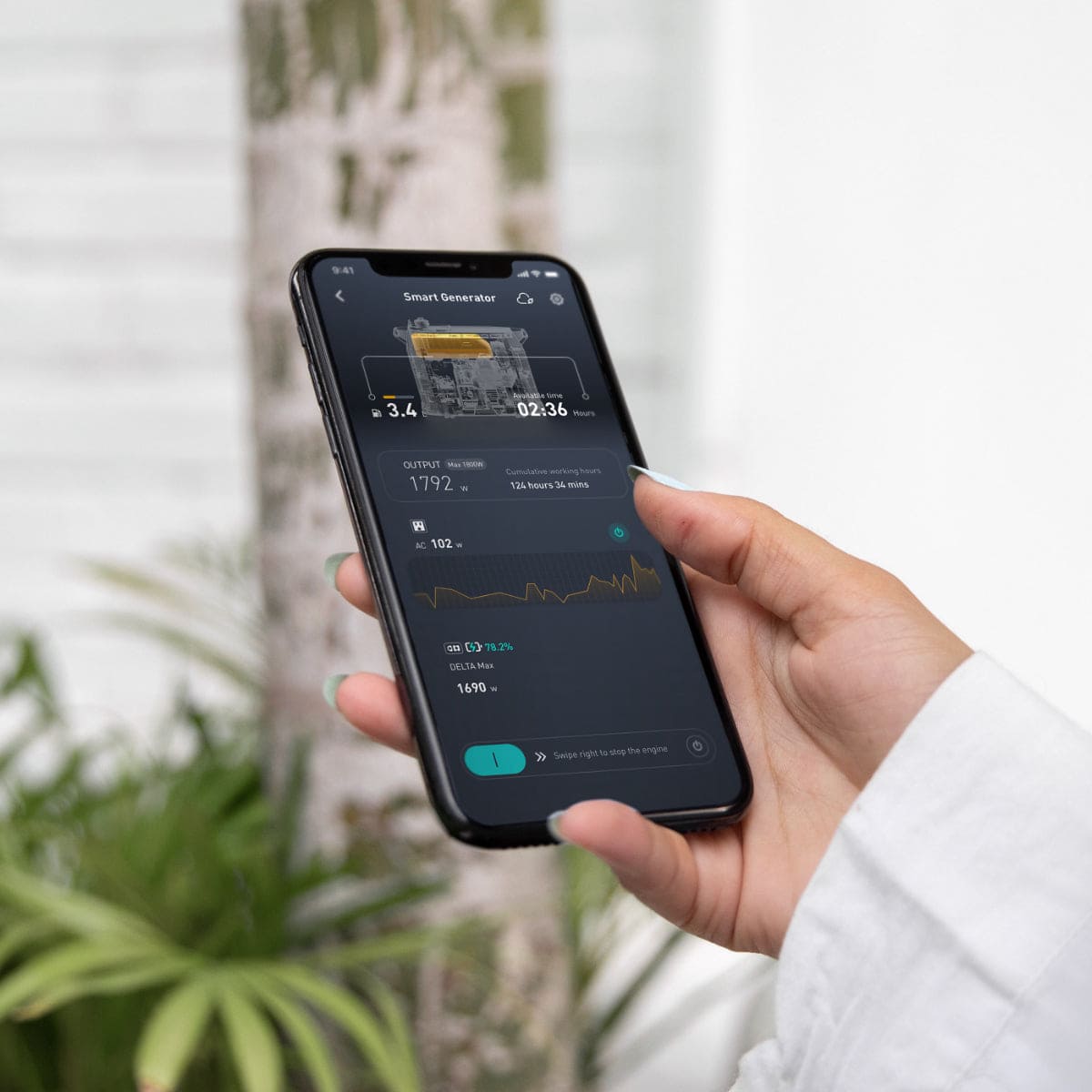 The EcoFlow app gives you complete control over the EcoFlow Smart Generator at the touch of a button. You can control, monitor, and access your smart generator settings, such as choosing when it autostarts during an emergency.