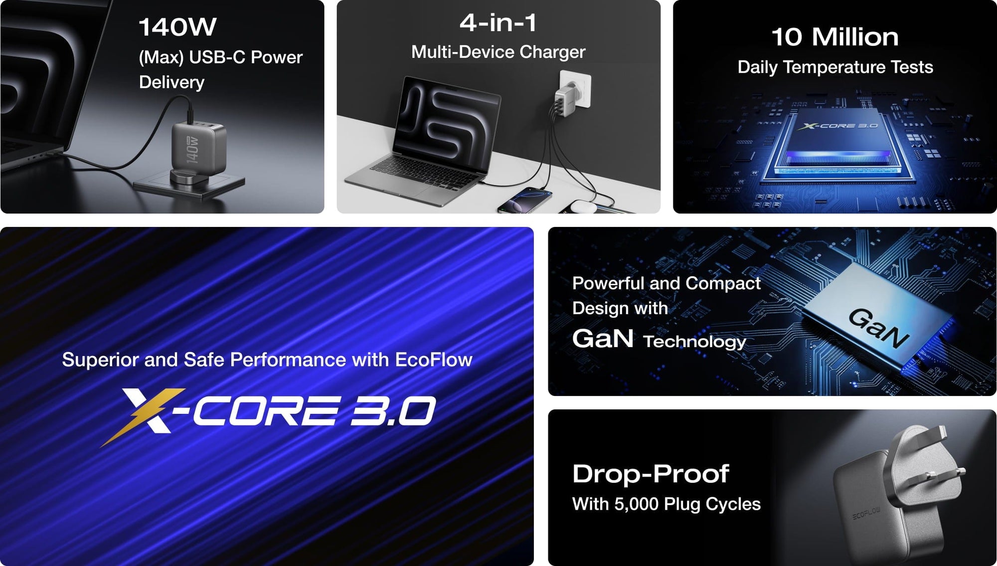 Specs - EcoFlow RAPID Pro Charger (140W, 4 Ports, GaN)