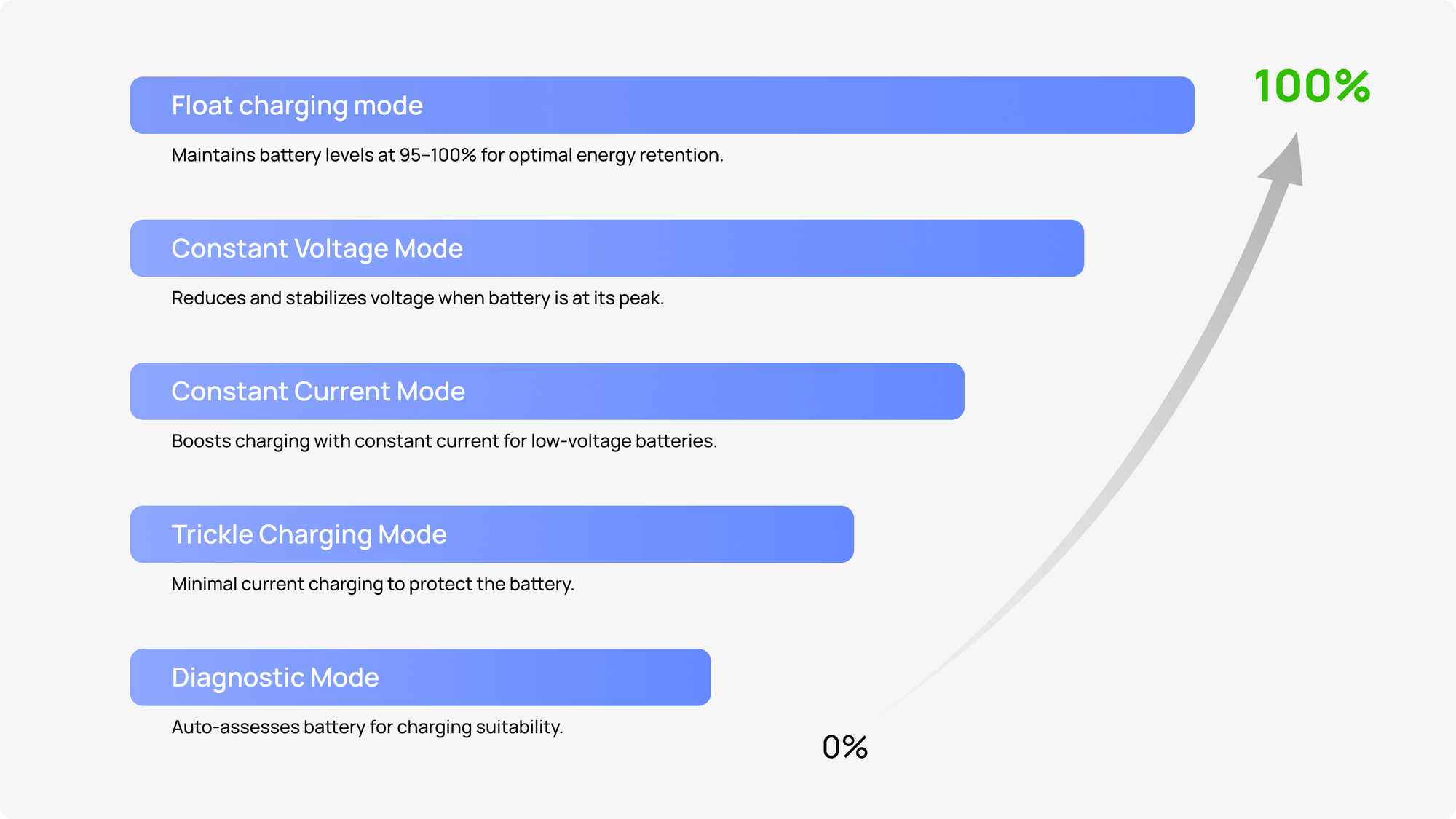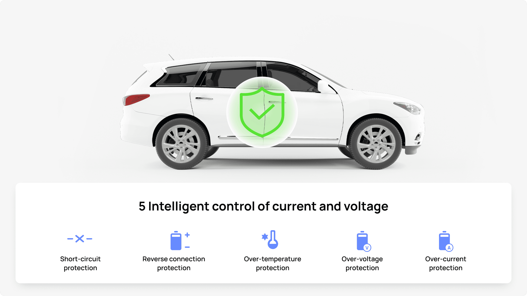 Benefit from our advanced system that intuitively adjusts current and voltage, ensuring your battery is charged safely without any risk of overcharging.