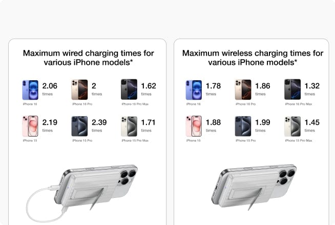 • 10,000mAh On-Demand Energy: No full charge? There's no need to panic. 10,000mAh can refuel an iPhone 16 2.06 times.