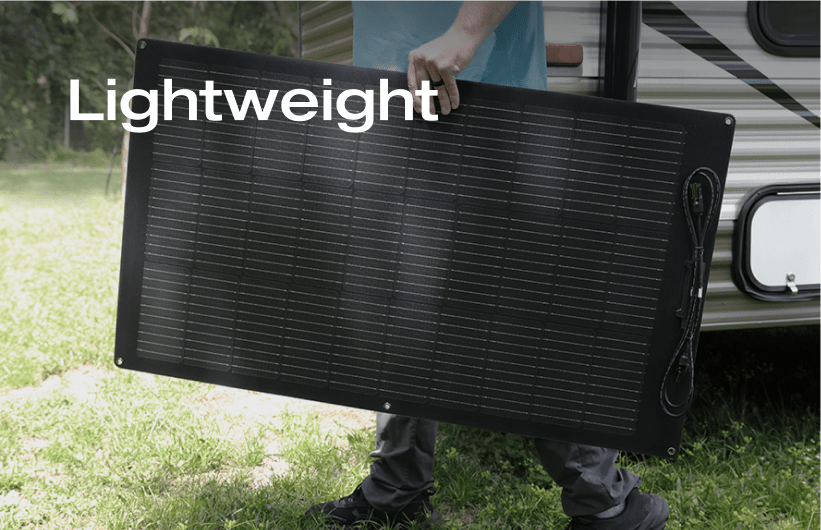 Weighing only 5.1 lbs/2.3 kg and a compact size of 41.5in x 24in x 1in/105cm x 60cm x 2.5cm, this 100W flexible solar panel can be mounted on RV roofs, tents, or even awnings to collect and store solar energy.
