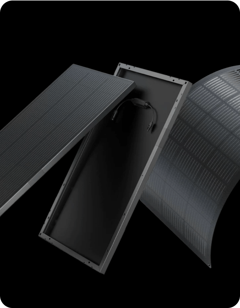 EcoFlow offers an exceptional range of solar panel types, from portable, folding solar panels with built-in self-supporting stands to lightweight, easy-to-attach flexible solar panels and robust, rigid solar panels. Plus, with wattages from 60-400W, we've got your every power need covered. Connect them in parallel and series to get the most out of your panels.