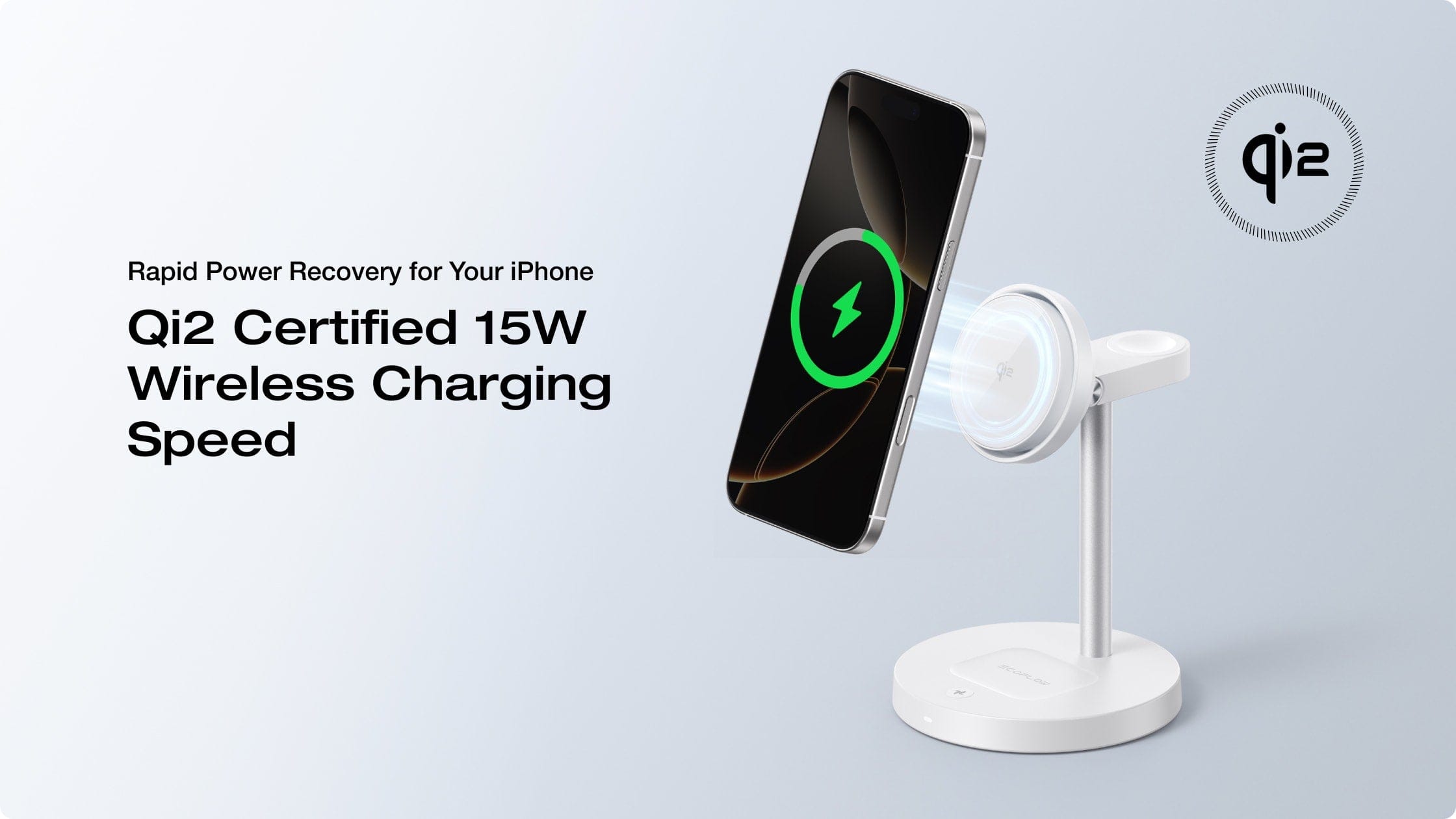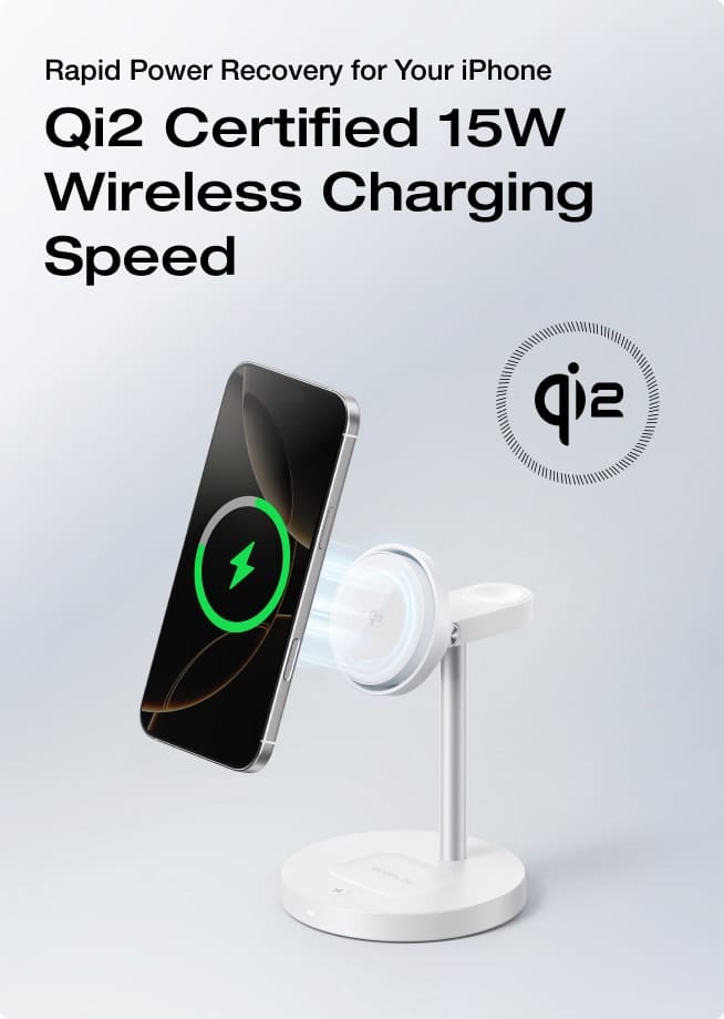 Qi2 Certification delivers ultra-fast 15W wireless charging speeds – faster than Qi1 7.5W chargers, refueling your iPhone 16 Pro Max from 0 to 50% in just 38 minutes (vs. 94 minutes with Qi1 Certified).* A fast charge before you go keeps your phone powered up for your commute, daily grind, gym session, and then some.